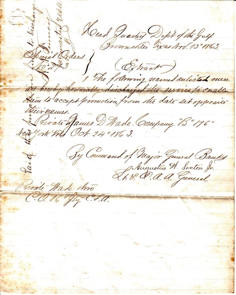 Private James D. Wade. Company “B” 176th New York Vols. Oct. 24th 1863.